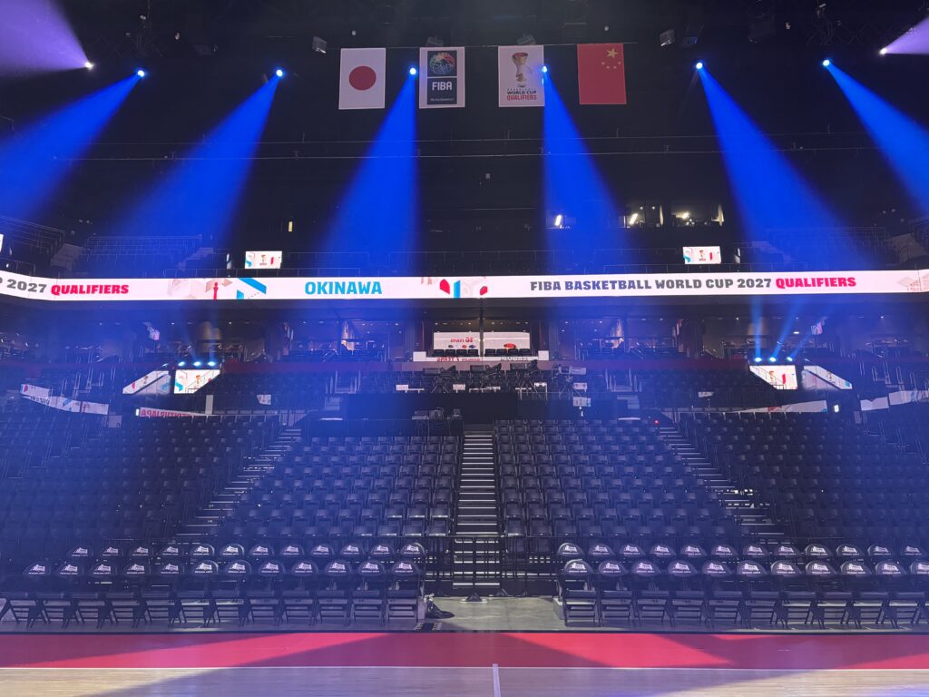 2026年2月26日、3月1日沖縄サントリーアリーナで行われた「FIBAバスケットボールワールドカップ2027アジア地区予選WINDOW2」において音響・照明のサポートさせていただきました。
